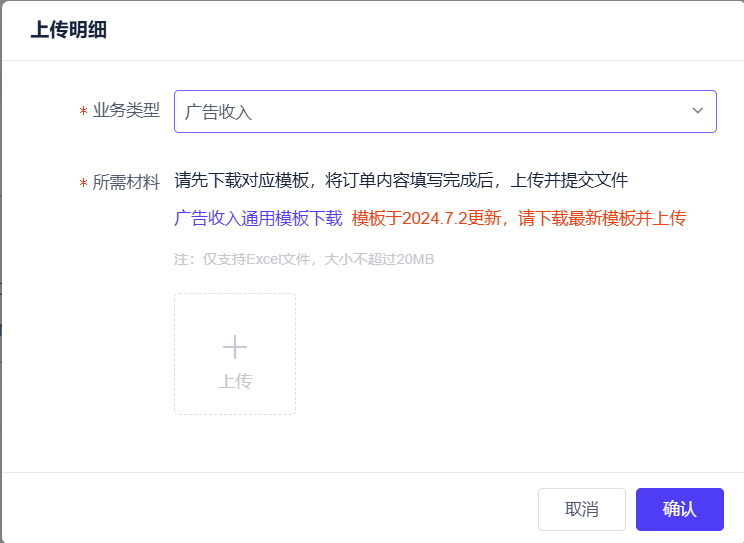 若您需要上传物流/广告明细文件,请下载通用模板,按规则填写后上传