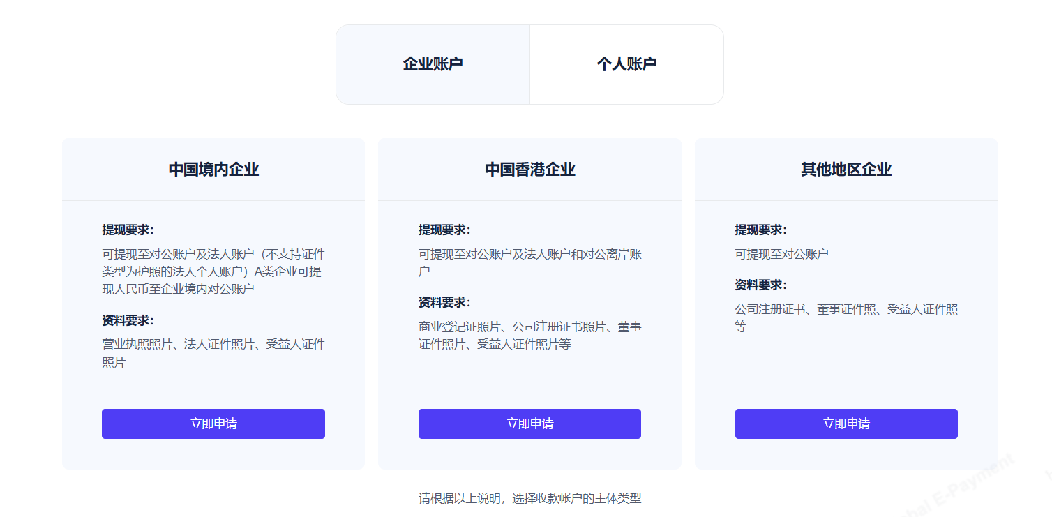 暂无相关搜索结果! 注册认证注册指引注册常见问题实名认证账户安全跨境电商账号使用指南收款管理申请收款账号查看收款账号下载开户凭证如何绑定收款账号亚马逊更换提现账号指南亚马逊收款账号绑定指南Lazada菲律宾收款账户绑定指南Shopee印尼收款账户绑定指南Shopee泰国收款账户绑定指南Shopee马来收款账户绑定指南Shopee越南收款账户绑定指南Tiktok英国收款账户绑定指南Tiktok越南收款账号绑定指南Tiktok马来收款账号绑定指南Tiktok印尼收款账号绑定指南Tiktok美国收款账号绑定指南Naver本土店收款账户绑定指南Paypal收款账户绑定指南Stripe收款账户绑定指南11street绑定指南Gmarket绑定指南Leboncoin绑定指南订单额度管理付款管理出款失败重新出款店铺管理补充店铺信息店铺集管店铺迁移店铺授权Shoplazza授权指南etsy店铺授权Tiktok店铺授权亚马逊电商平台授权eBay店铺授权跨境服贸账号使用指南收款管理申请账号账户详情收款入账提现&付款付款管理全球付款交易管理外贸B2B产品使用指南收款收款能力&注意事项申请收款账户收款操作结汇&海外付款货币兑换账户间转账操作员管理&权限设置帮助中心虚拟卡VCC使用指南关于Payful卡资金转入/转出常规卡共享卡母子账户自动转入数据看板Q&A操作说明汇总新功能介绍26年3月产品上新 实名认证 修改时间:2024-06-27 16:03:35 +0800 CST 分享 下载 PDF Markdown 打印 提交KYC:在注册成功后,需要您提交实名认证的信息。提交实名信息后,预计我们会在1-2个工作日内审核完成。如果审核成功后,我们会发送短信通知客户,即可开启你的全球收付业务。如果审核失败,您需要登录Payful(原GEP)账号,查看失败原因,重新修改并提交实名信息。目前支持的类型是:企业:中国境内企业、中国香港企业、其他境外地区企业个人:中国境内个人、中国香港个人 中国大陆企业: 中国香港企业 其他地区企业 中国大陆个人 中国香港个人